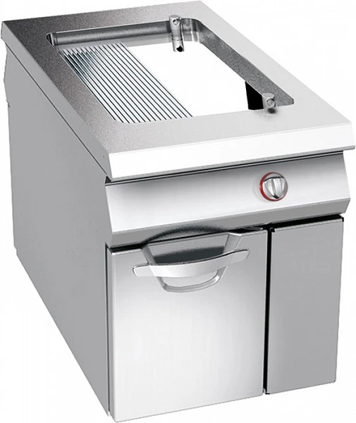 Гриль-сковорода непосредственной жарки односекционный напольный с комбинированной хромированной плоской и ребристой жарочной поверхностью из Fe510D стали- функциональный элемент линии Omega.