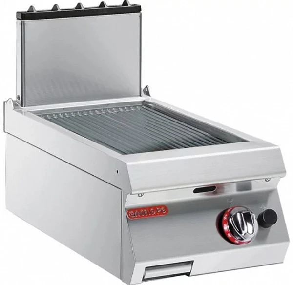 Гриль-сковорода газовая с ребристой жарочной толщиной 15 мм из сплава Fe510D - функциональный элемент линии Гамма (глубина 700мм).