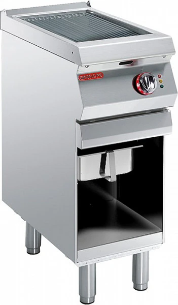 Гриль-сковорода непосредственной жарки односекционный напольный с ребристой жарочной поверхностью размером 295*525 мм из Fe510D стали с матовой отделкой- функциональный элемент линии Gamma.